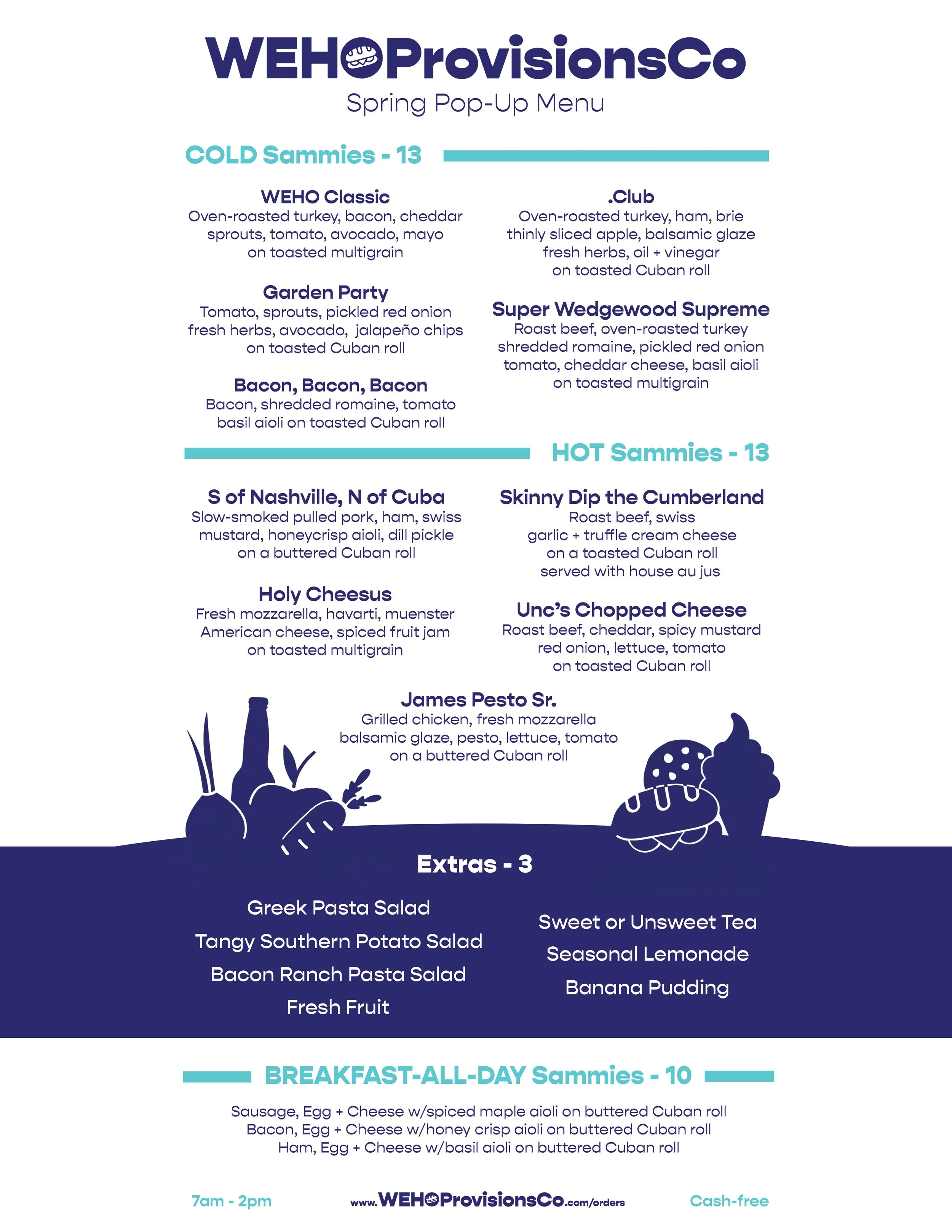 Pick 1 sammie, 1 side + 1 tea or seasonal lemonade.